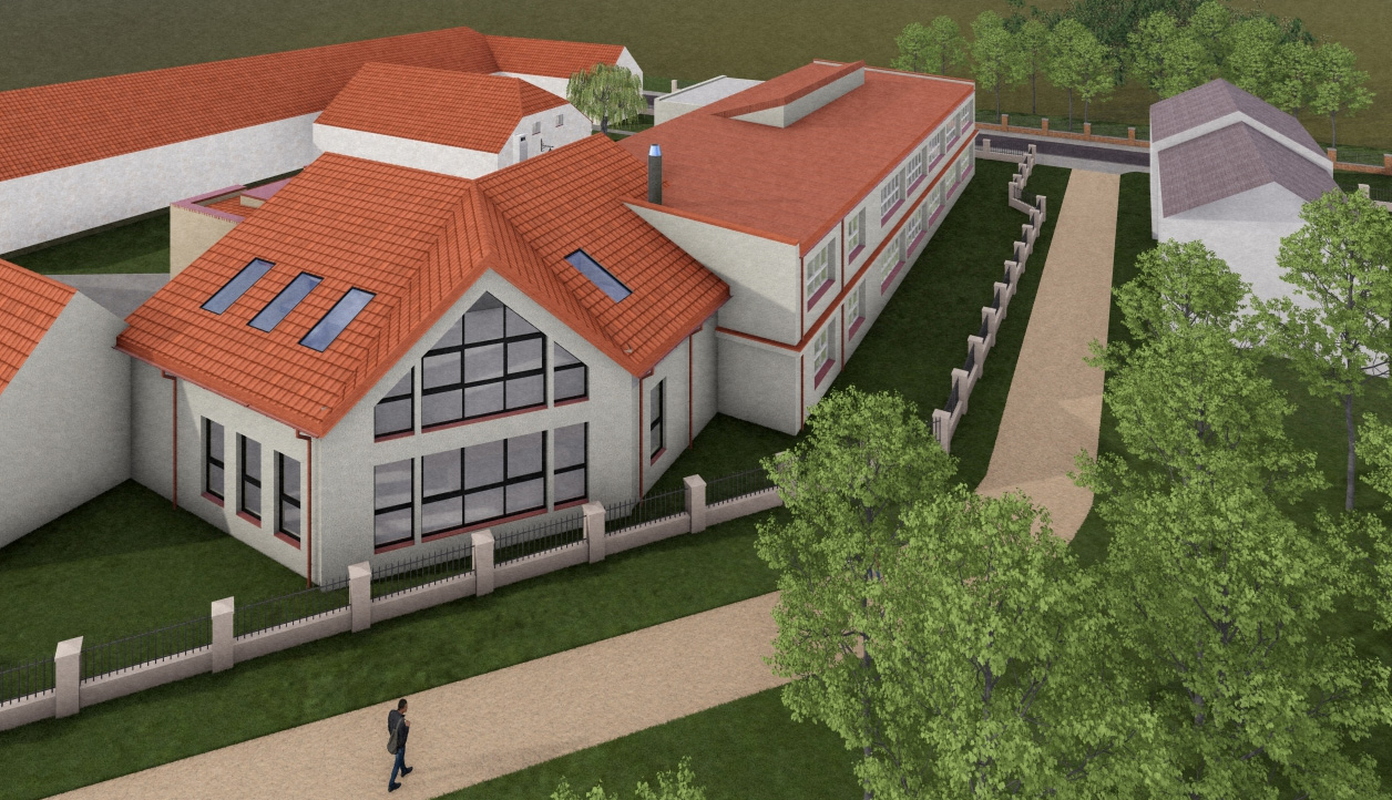 Forma budynku nawiązuje do wzorów klasycznych z elementami współczesnej swobody projektowej.