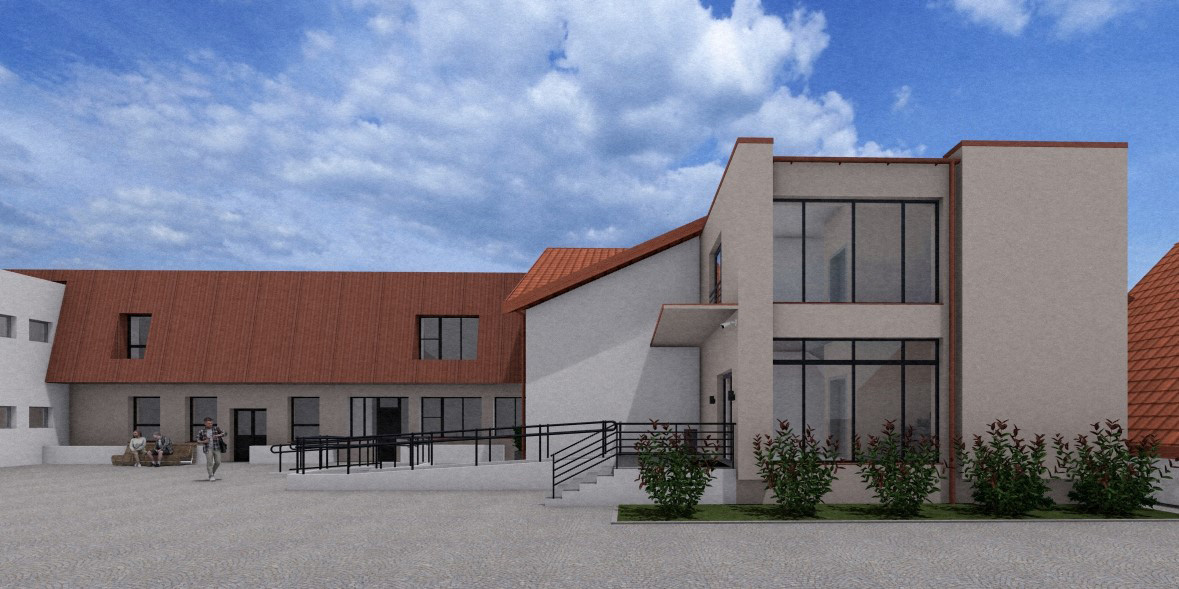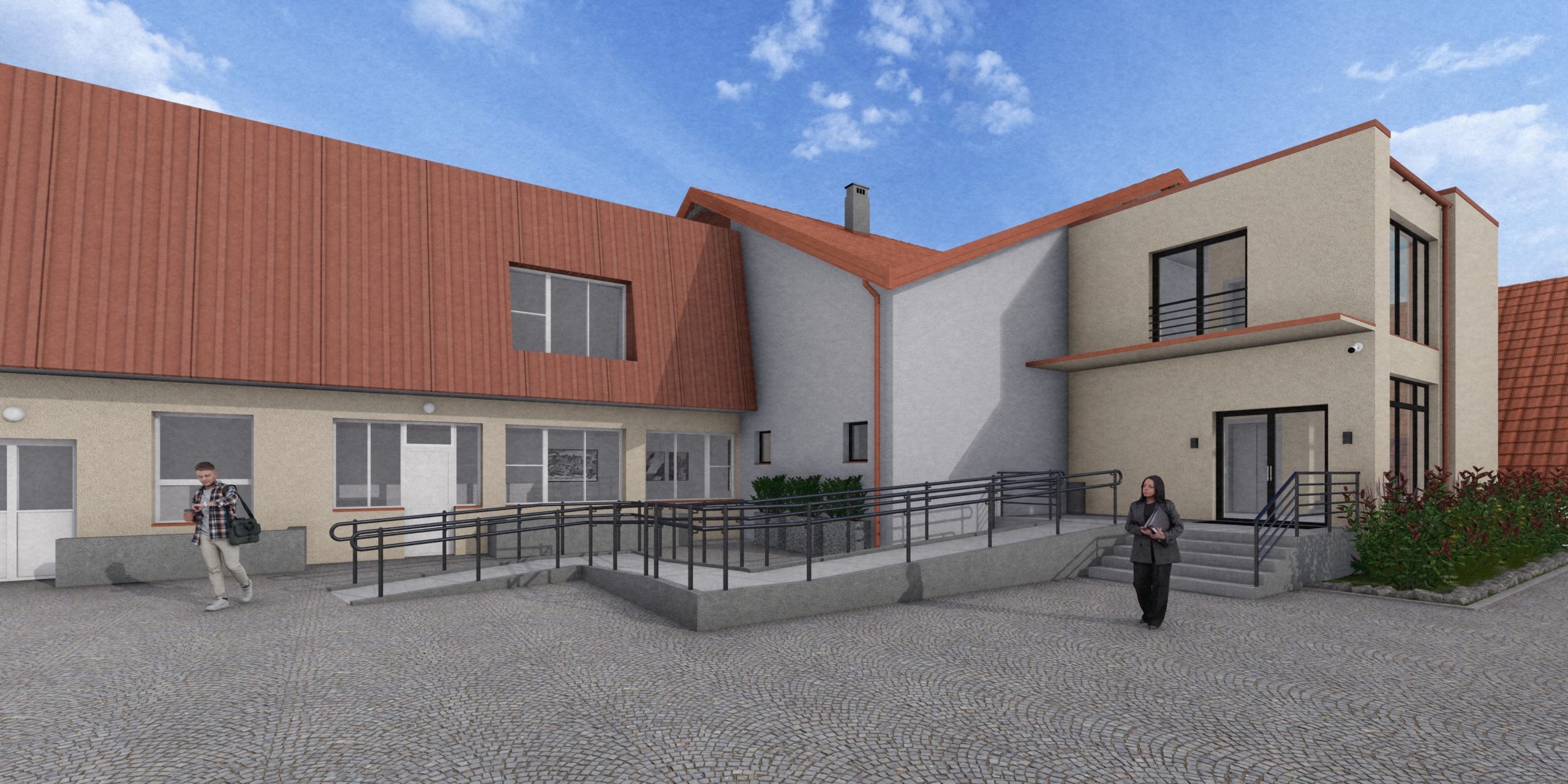 Zespół złożony z odrestaurowanej kamienicy z przełomu wieku XIX i XX połączonej ze współczesną klatką schodową i biblioteką.